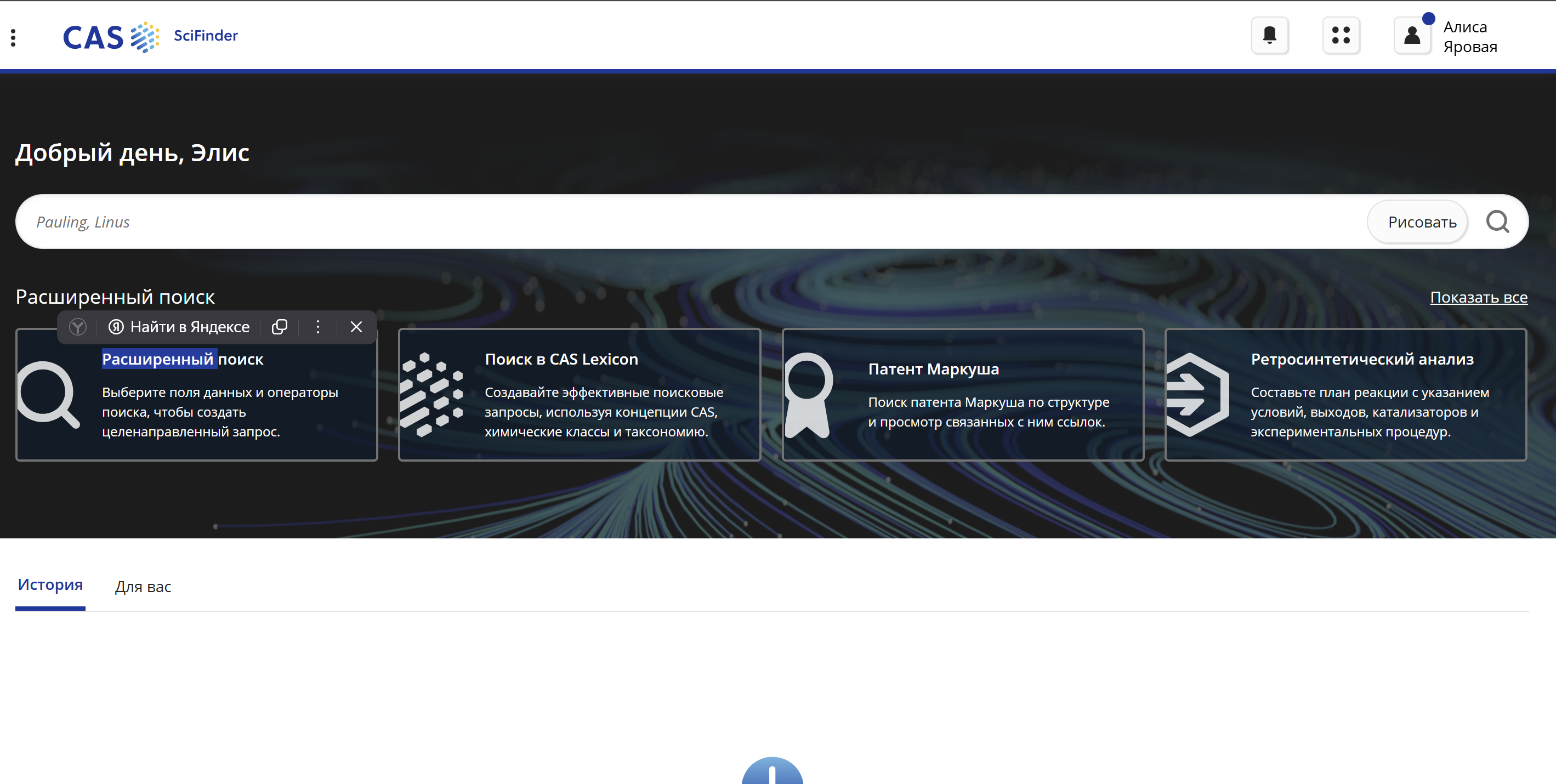 Регистрация в SciFinder